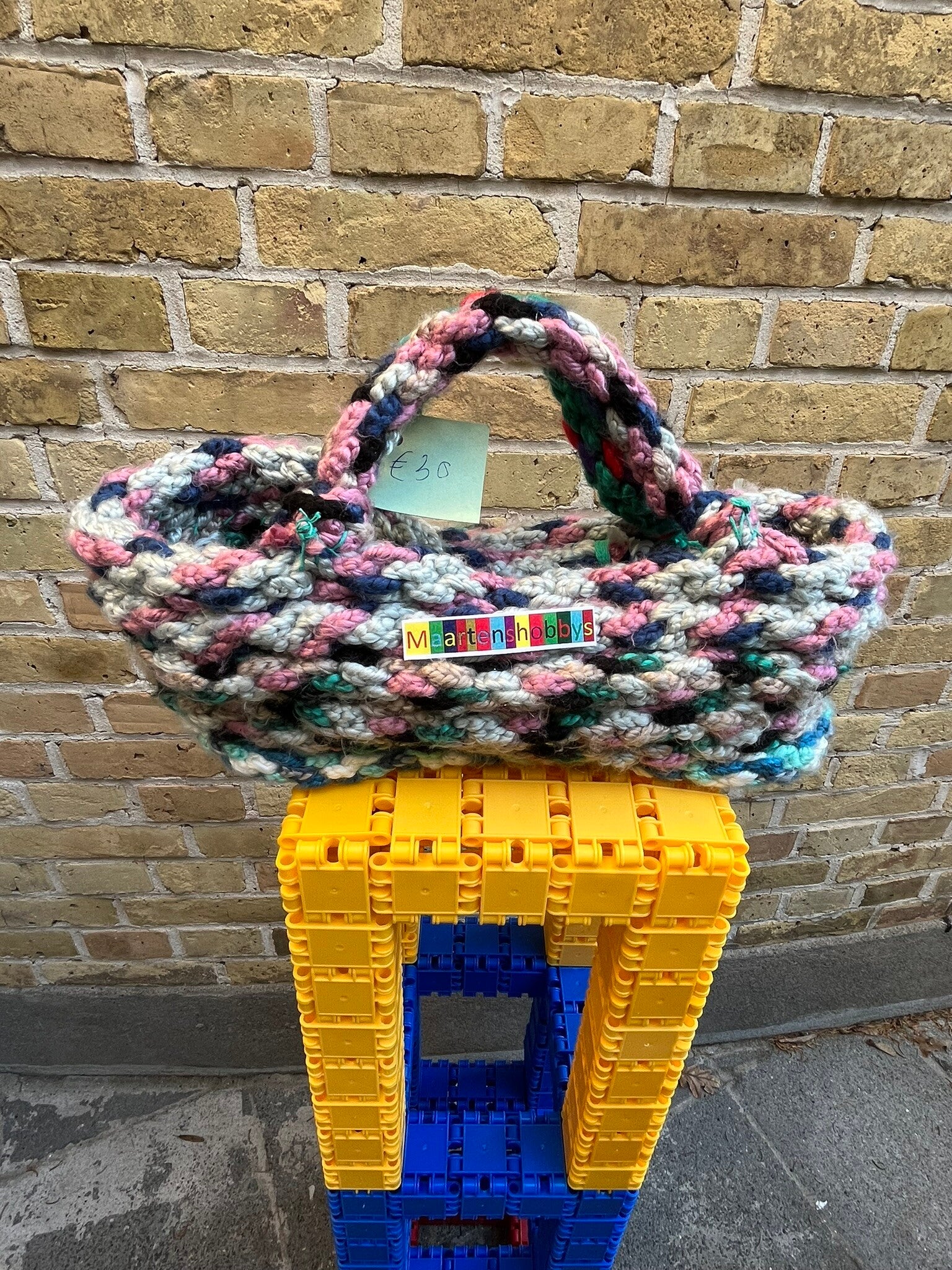 Een handgemaakt mandje dat eruit ziet als een handtas.